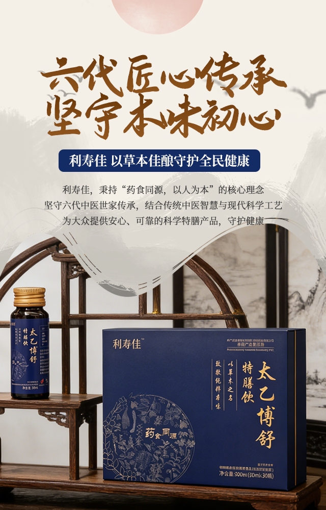 利寿佳太乙博舒特膳饮,凝聚了六代中医世家智慧与现代科技的创新成果;