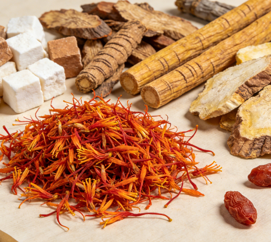 以药食同源为核心,严选西红花、茯苓、党参、葛根、杜仲叶、黄芪等 25 味草本原料